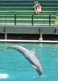 | My final show this day was the dolphin show. Maybe they jumped higher than Flipper, or maybe I was just finally getting the hang of it, but it seemed easier to get photos of these dolphins: |
