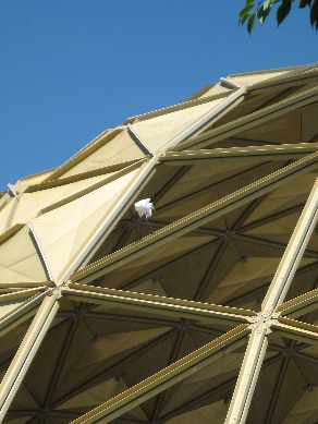 | The next major show was the seal show at the Golden Dome. As we entered, we looked up to see this great egret waiting for the show to start. Apparently the wild animals around here have also learned where to go for easy food pickins. |