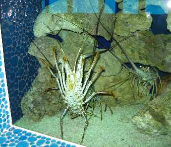 | They also have a number of small tanks exhibiting creatures like these lobsters. The one in front seemed to be doing a little dance for us. |