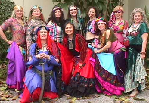 | The Rising Phoenix Dancers performed with Troupe Zahara at the Florida State Fair in Tampa, February 2003. Left, the Rising Phoenixes pose after the show. Left to right: Marn, Sherezzah, Laurel, Joani, and Adena. |