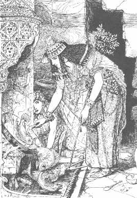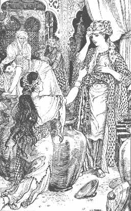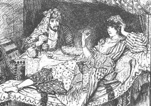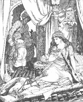 | Here, "The lady shows Alnaschar the coffers packed with gold" from the "Story of the Barber's Fifth Brother." |