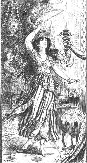 | From the same story, "Noureddin gets rid of the two little slaves." Here I especially like the lamp over her head. |