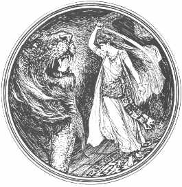 | Here, "She cut the lion's body into two pieces" from the same story. I like her hip scarf. |
