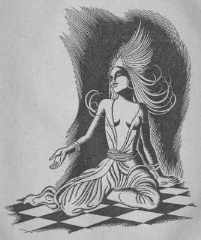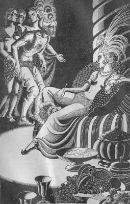 | This is Morgiana, having done the deed with her dagger, in "Ali Baba and the Forty Thieves." She doesn't look too happy at having saved her boss's life... |