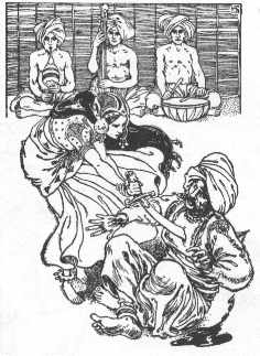 Here is a compilation of images of the dancing servant girl in the "Ali Baba" story of Arabian Nights, Morgiana (sometimes called Marghana or other similar names). The books often have pictures of her with the thief-jars (probably more commonly than they show her dancing), but I'm only including the dancing ones.