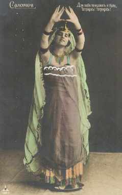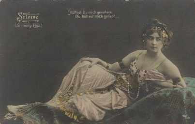 This page contains images of Salome from real-photo postcards. Most of them depict actresses who portrayed Salome in productions of the Oscar Wilde play around the early 1900s; I confess I haven't yet done much research to find out more details.