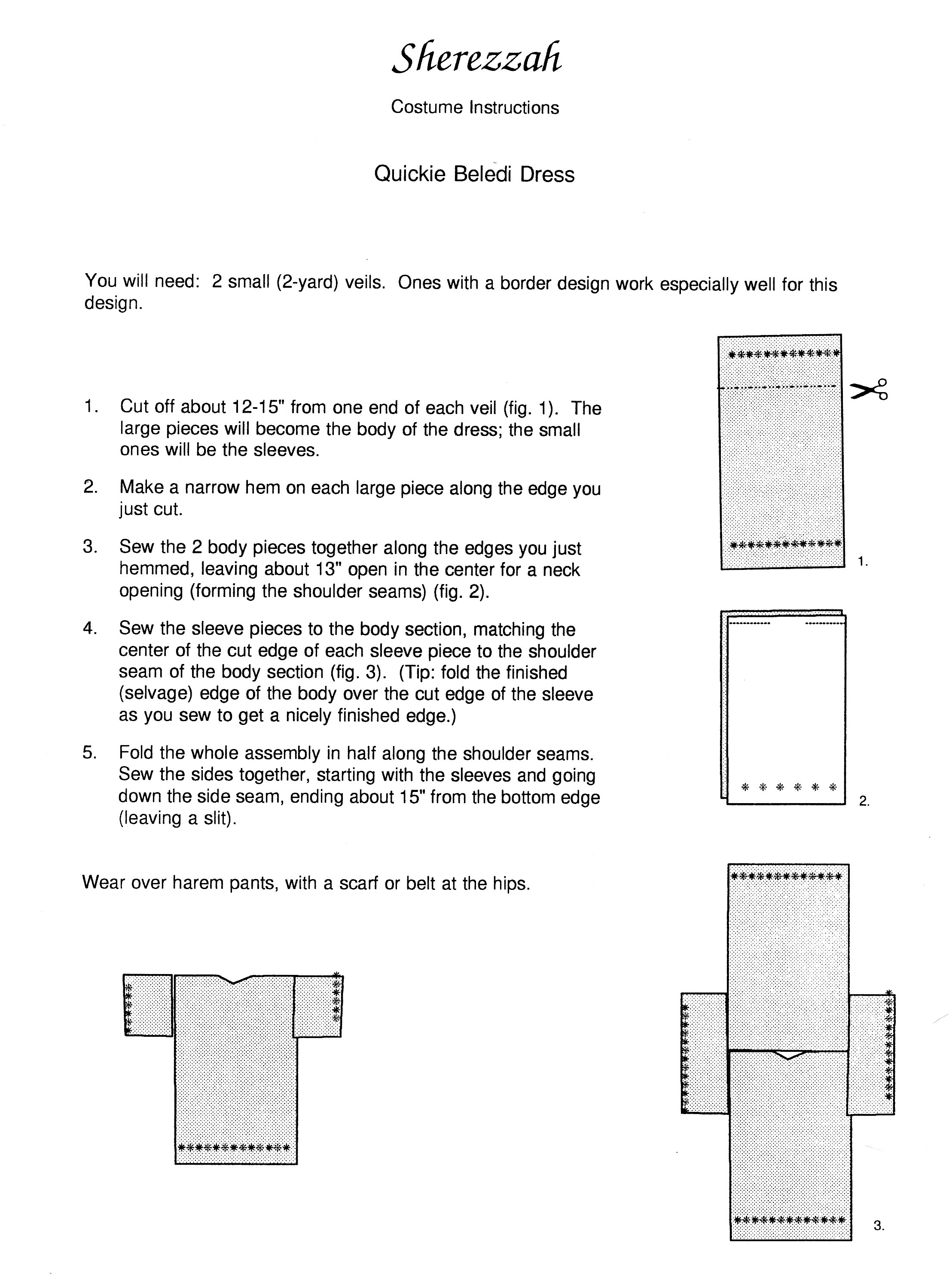 I'd made a handout for my classes on how to make this dress, so until I get a chance to convert into reasonable HTML, I have this scanned image. If it's too small to read for you, you should be able to click on it to get the full-resolution version, which should also work well if you want to print it.