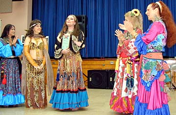 It was at an international folk dance event that she saw her first belly dancer. The dancer moved her body so fluidly with her veil billowing out behind her that Sherezzah thought it was the most "awesomely beautiful" thing she had ever seen. Later at a similar event, she was inspired by a wonderful story about the soul of a dancer. Thanks to the Internet, she finally found that story again. It's from Khalil Gibran; there's a copy here.