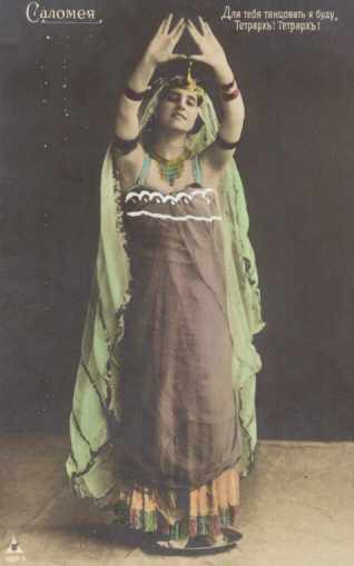 This page contains images of Salome from real-photo postcards. Most of them depict actresses who portrayed Salome in productions of the Oscar Wilde play around the early 1900s; I confess I haven't yet done much research to find out more details.