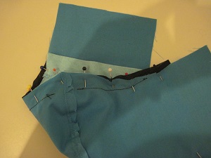 | 8. I then continued with the instructions as written, making a casing for the elastic by folding the fabric on the sides and stitching closed. |   |