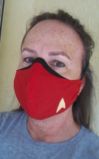 The following explains how I adapted the pattern to make my Trek mask. (I forgot to take pics along the way when I was making the first (red) mask, but did take some for the second (blue) mask, and added them below on 6/29/20.)